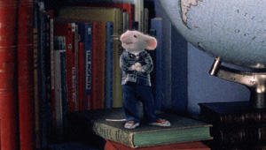 養護施設に着いたリトル夫妻は、元気がよくてかわいい子供たちがあんまり大勢いるので、迷ってしまう。「どの子を見ても素敵…」ふたりでため息をついていると、下の方から声がする。「素敵なのはあなたたちの方だよ。お互いかけがえのない家族なんだね。」 声の主を探すと、ふたりの間に小さな白いネズミがすわっている。こうしてスチュアート(声:マイケル・J・フォックス)に出会ったリトル夫妻は、その賢さと家族に憧れるいじらしさに、いっぺんで彼を気に入り、養子にもらい受ける。