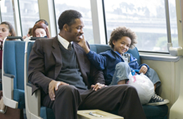 本作のエグゼクティヴ・プロデューサー、マーク・クレイマンがクリス・ガードナーの実話を映画化しようと思い立ったのは、2003年、ABCの報道番組『20/20』でガードナーについての特集を観たのがきっかけだった。クレイマンはこう振り返る。“特集ではクリスがいかに驚くべき困難に直面したか、いかにホームレス状態の真っ只中にあったかを取り上げていた。その中で、彼が息子と一緒にBART(※)の駅のトイレを再訪し、どんなふうに洗面台で体を洗っていたかを話す場面があったよ。うちにも当時1歳の息子がいたものだから、私も妻もあれには泣かされてしまった。私は、赤貧からリッチへ、という話ではなく、心揺さぶる父と子の物語としてあれを見たんだ。私は妻にこう言ったよ、‘この話の映画化権を取らなくちゃ、きっとウィル・スミスの当たり役になるぞ’ってね”。
